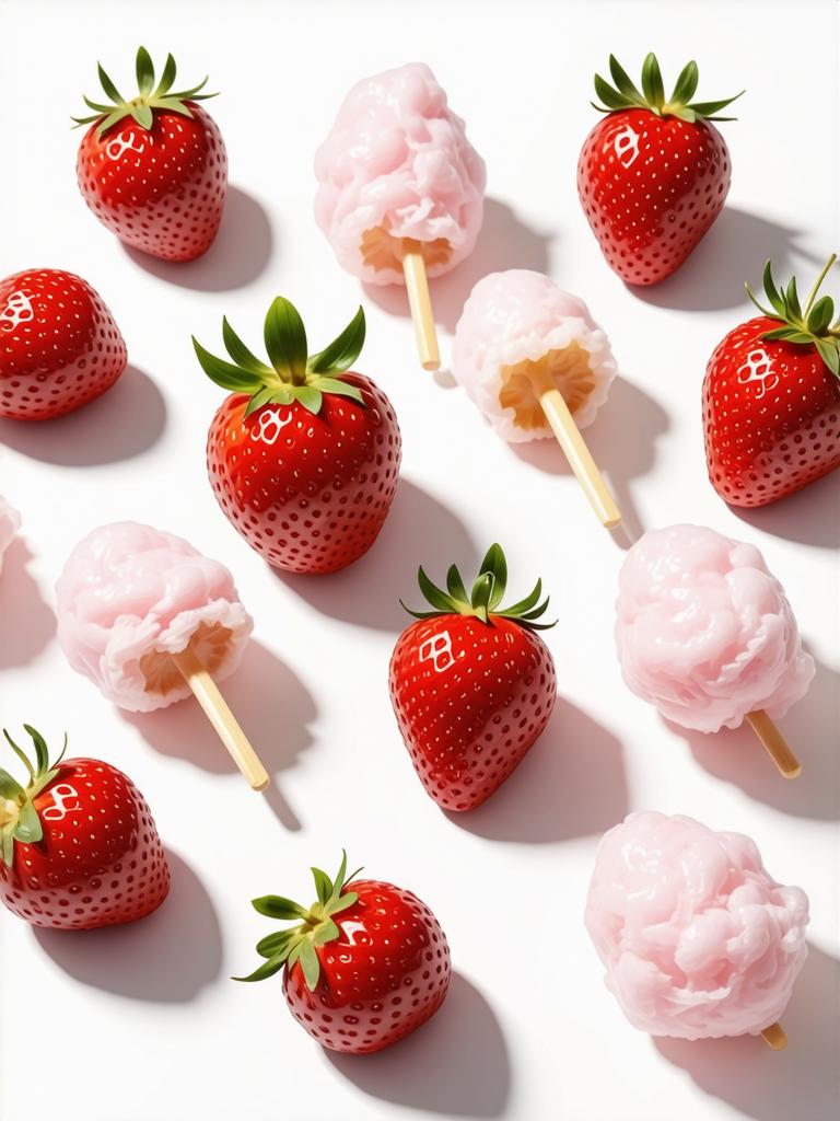 Клубника, ананас, карамель, сахарная вата, хлеб
